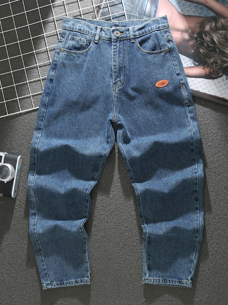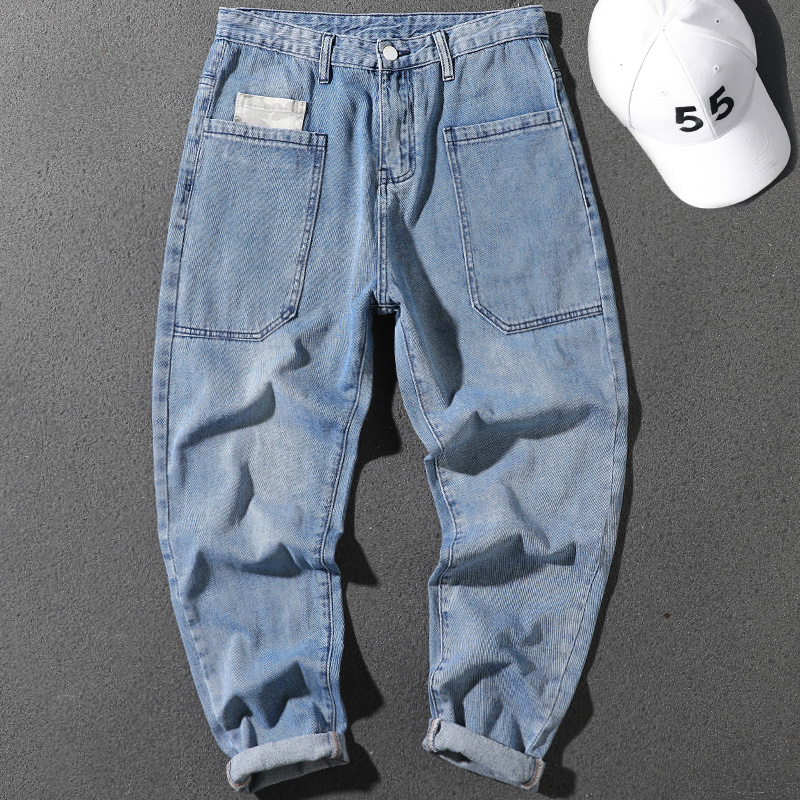 Korean style jeans for men spring new style large pocket loose straight pants blue personalized versatile casual trousers